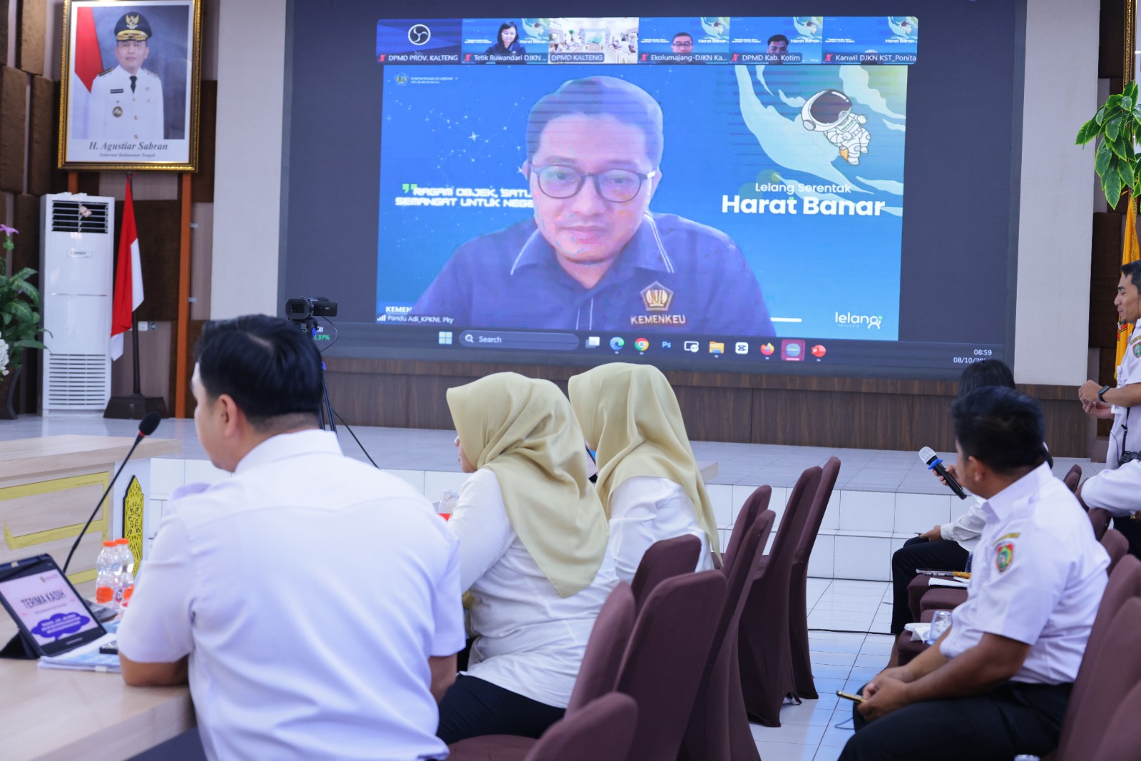 Kegiatan yang diselenggarakan secara hybrid dan disiarkan melalui Zoom Meeting maupun youtube ini diikuti oleh seluruh Kepala Desa se-Provinsi Kalimantan Tengah dengan tujuan untuk meningkatkan pemahaman dan kompetensi terkait regulasi dan prosedur lelang barang milik desa, serta mendorong transparansi dan akuntabilitas dalam pengelolaan aset desa.