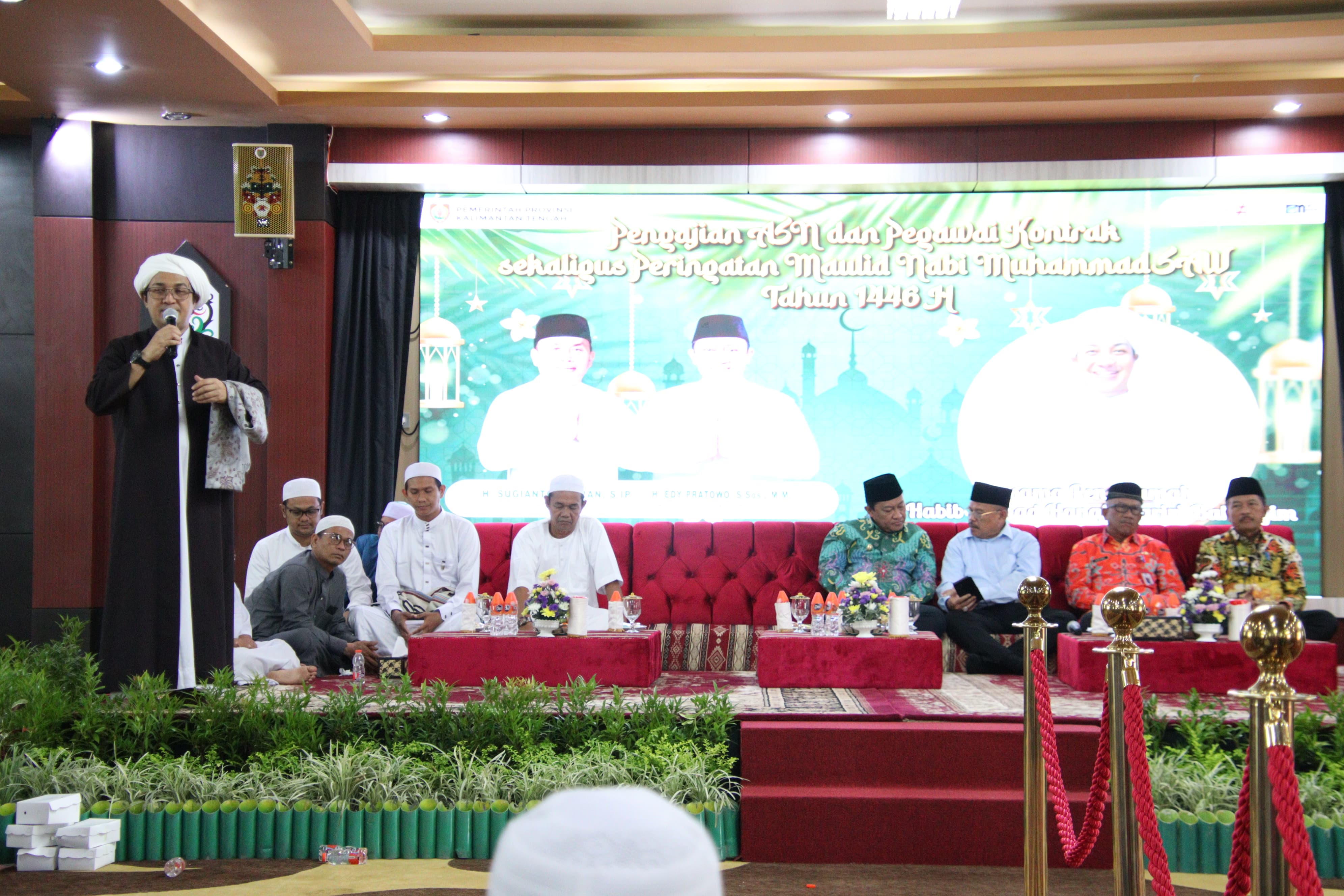 Wakil Gubernur Kalimantan Tengah H. Edy Pratowo turut menghadiri pengajian dan membacakan sambutan tertulis Gubernur Kalteng yang menyampaikan bahwa Peringatan Maulid Nabi Muhammad SAW merupakan momentum penting bagi umat Islam. “Pada kesempatan ini saya mengajak kita semua, untuk meneladani sifat Rasulullah SAW, dan menerapkan sikap perilaku dan akhlak beliau dalam kehidupan bermasyarakat, berbangsa, dan bernegara”, tutur Wagub.