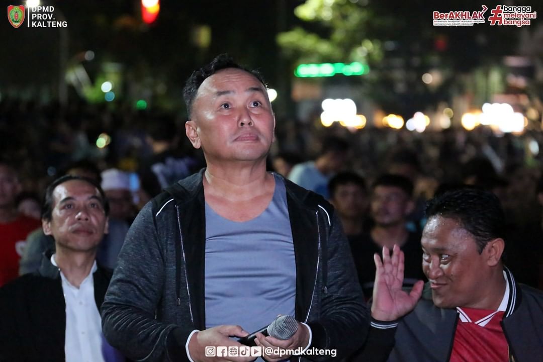 PMDKalteng - Palangka Raya - Gubernur Kalimantan Tengah (Kalteng) H. Sugianto Sabran menggelar Nonton Bareng (Nobar) pertandingan sepak bola antara Tim Nasional (Timnas) Indonesia U-23 vs Timnas Uzbekistan U-23 di babak semifinal Piala Asia U-23, yang dipusatkan di area Bundaran Besar Palangka Raya, Senin (29/4/2024) malam.
