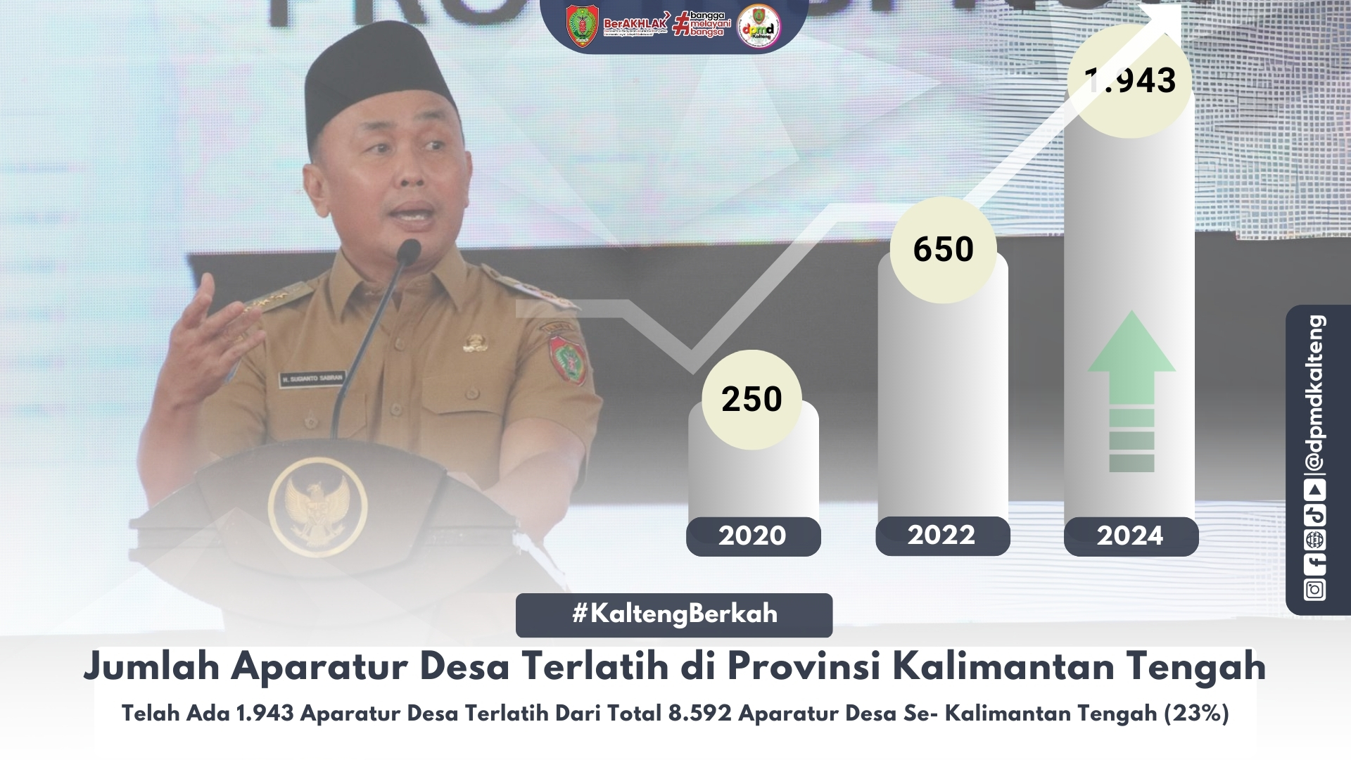 Gubernur sangat berkomitmen dalam pembangunan Desa di Provinsi Kalteng, sehingga status kemandirian Desa semakin meningkat. Peningkatan status kemandirian Desa dapat terealisasi karena sebanding dengan meningkatnya kapasitas SDM Aparatur Desa Terlatih yang semula pada tahun 2020 hanya ada 250 aparatur terlatih, menjadi 1.943 aparatur terlatih pada tahun 2024.