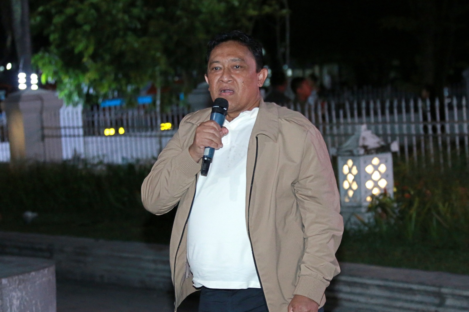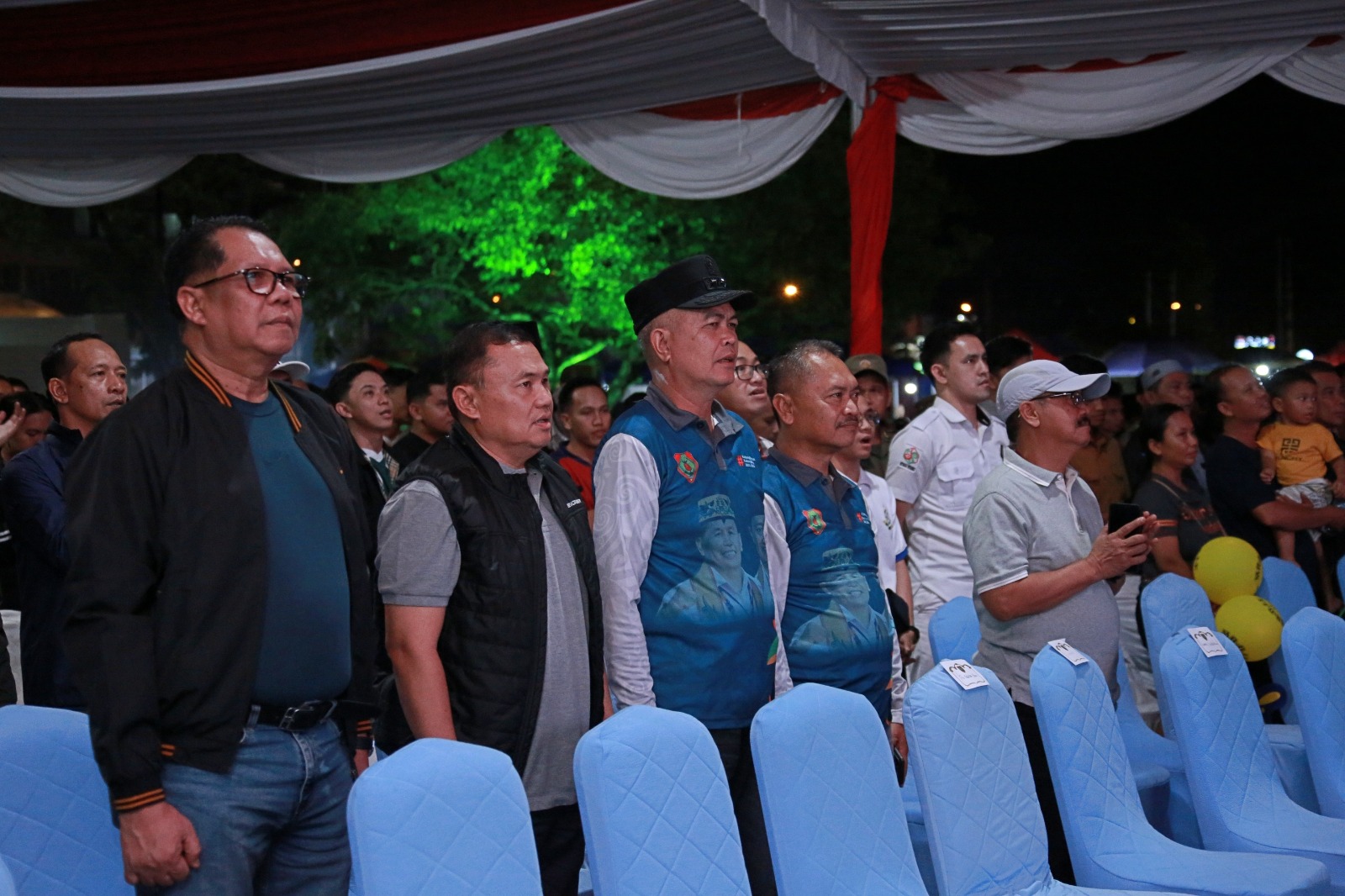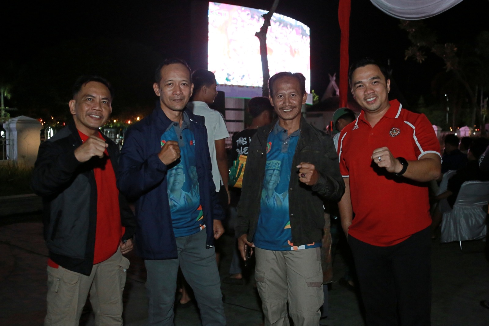 PMDKalteng - Palangka Raya- Kepala Dinas Pemberdayaan Masyarakat dan Desa (PMD) Kalteng H.Aryawan turut hadir memberikan dukungannya kepada Tim Nasional (Timnas) Indonesia pada acara Nonton Bersama (Nobar) Kualifikasi Piala Dunia 2026 Round 3 antara Timnas Indonesia VS Bahrain yang digelar di Bundaran Besar, di Videotron Depan Istana Isen Mulang, Selasa (25/03/2025) Malam.