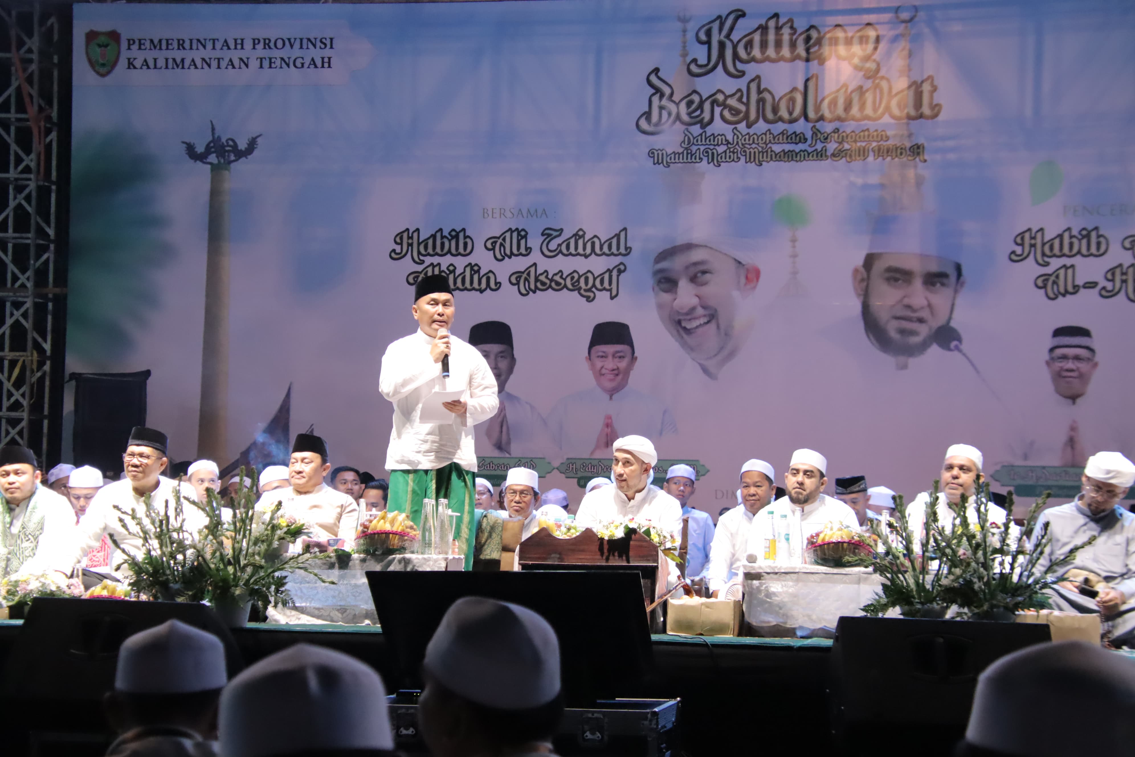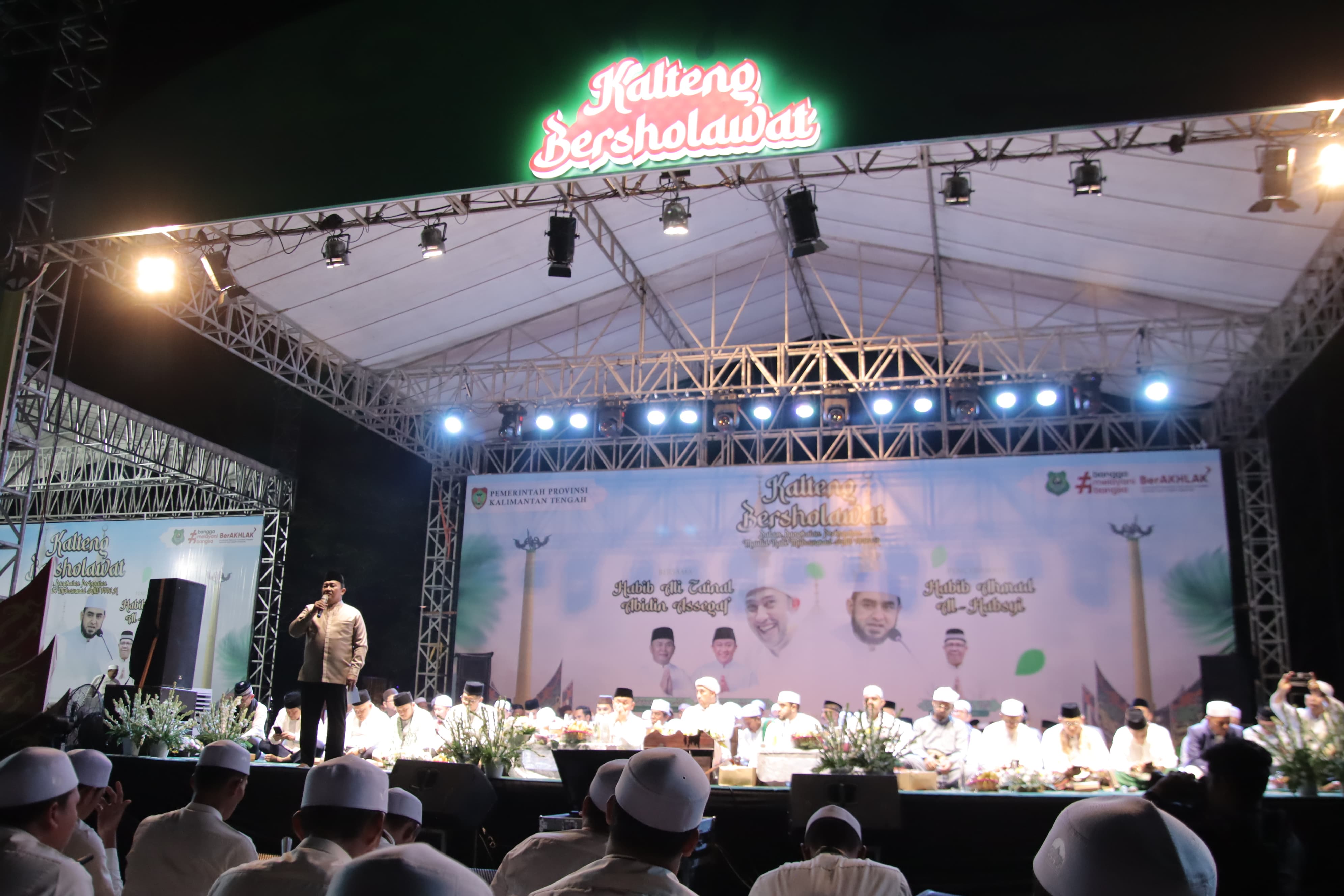 H. Sugianto Sabran menyampaikan Peringatan Maulid Nabi Muhammad SAW merupakan momentum penting bagi umat Islam. Gubernur berharap melalui acara Kalteng Bershalawat malam ini dapat mempererat tali silaturahmi, memperkuat ukhuwah Islamiyah, serta menambah kecintaan kepada Baginda Rasulullah SAW.
