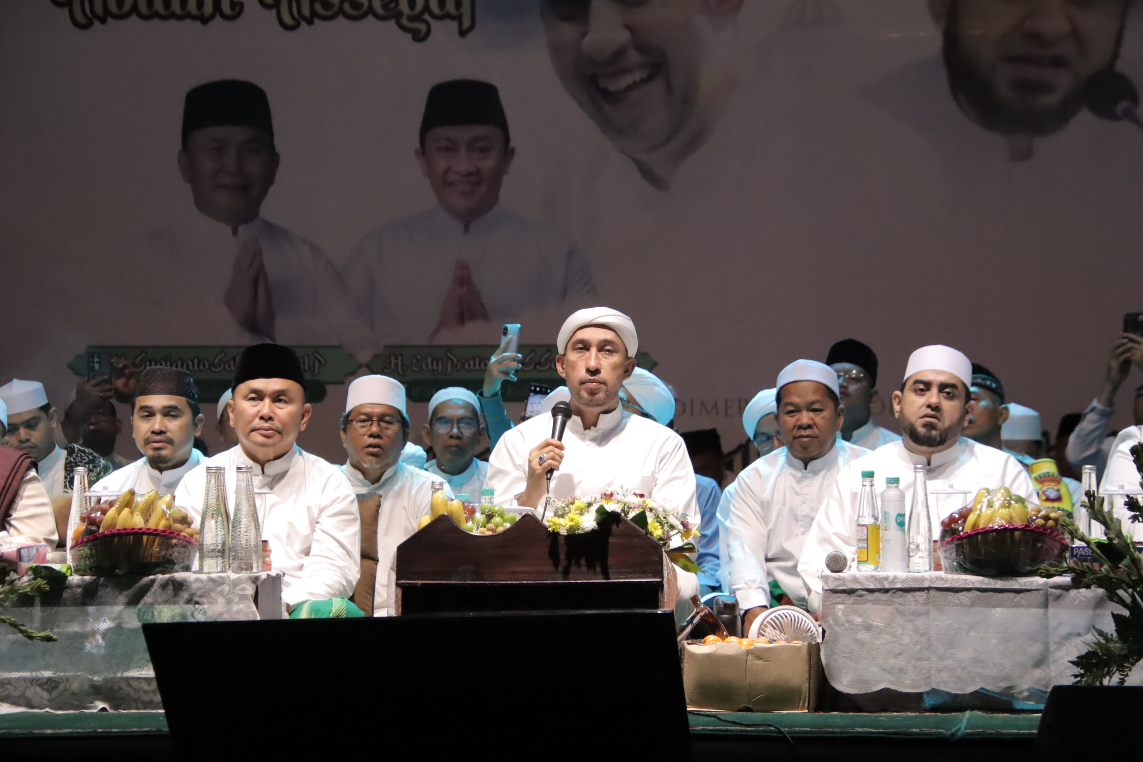 Hadir juga Al Mukarram Habib Ahmad Al Habsyi yang memberikan tausiyah yang mengingatkan kita bahwa mencintai Nabi SAW pada prinsipnya harus ditujukan hanya semata-mata untuk meraih keridhaan Allah SWT.