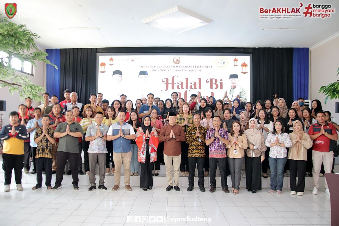 PMDKalteng - Palangka Raya - Dinas Pemberdayaan Masyarakat dan Desa (PMD) Provinsi Kalimantan Tengah menyelenggarakan acara Halal bi Halal bersama seluruh ASN, Tekon, Outsourcing dan Mahasiswa Magang lingkup Dinas PMD, bertempat di Aula Lewu Pancasila pada Jumat (19/4/2024).